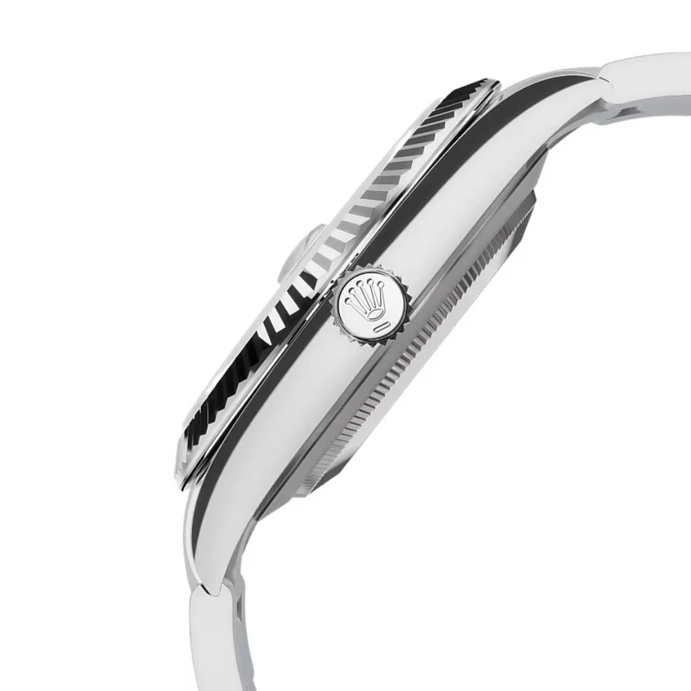 A hallmark of Rolex design, the fluted bezel, originally functional for waterproofing, now symbolizes timeless prestige. Rendered in 18 ct white gold, it elevates the Datejust 41’s classic appeal.