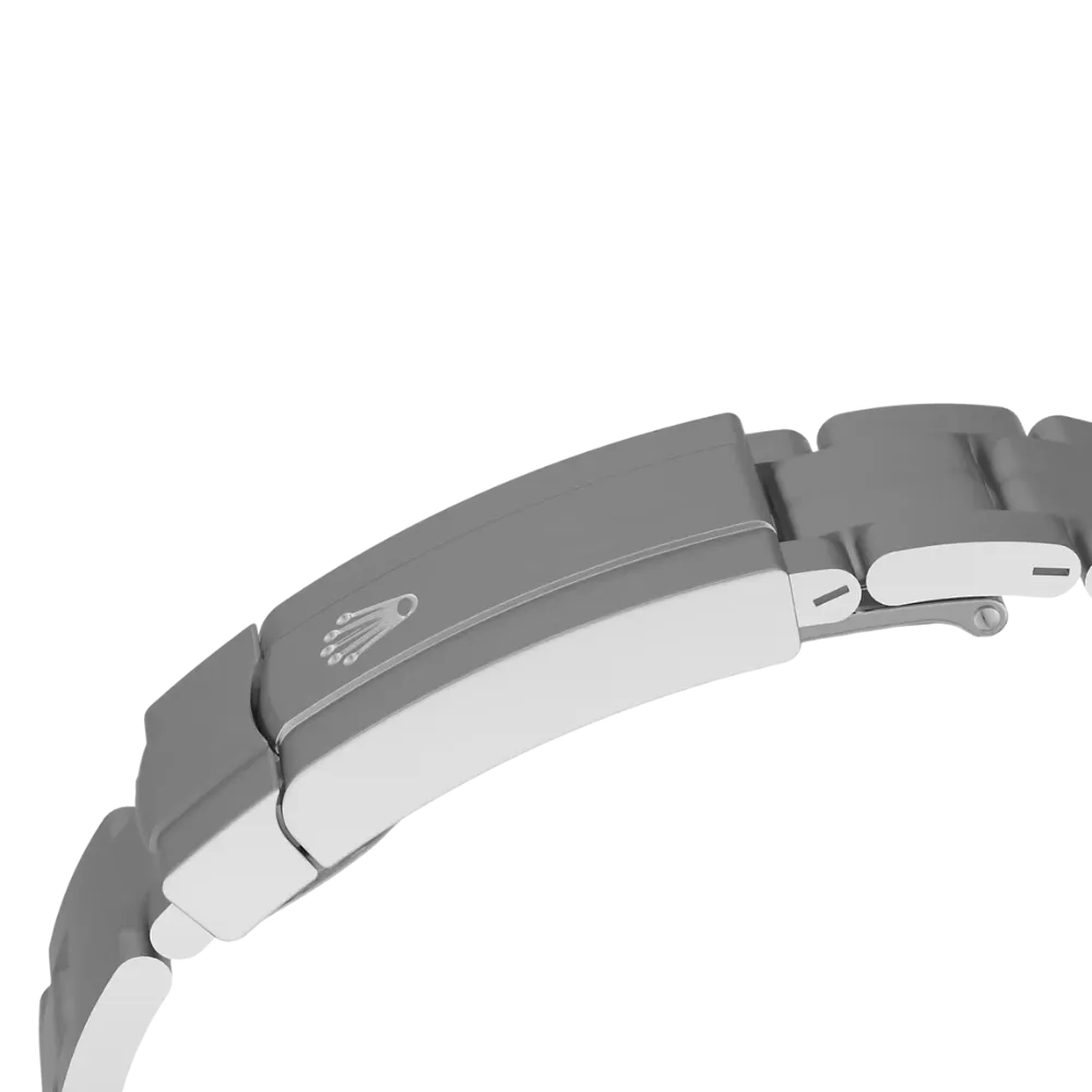 - Bracelet: Iconic Oyster bracelet (flat three-piece links) in Oystersteel; Folding Oysterclasp with Easylink 5 mm comfort extension.